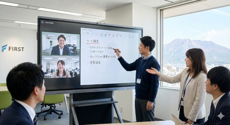 「実物を見てみたい」「実際の接続感を確認したい」**という鹿児島・鹿屋の企業様。 ぜひ、FIRSTのオフィスへお越しください。私たちが毎日使っている様子を、そのままデモンストレーションとしてご覧いただけます。